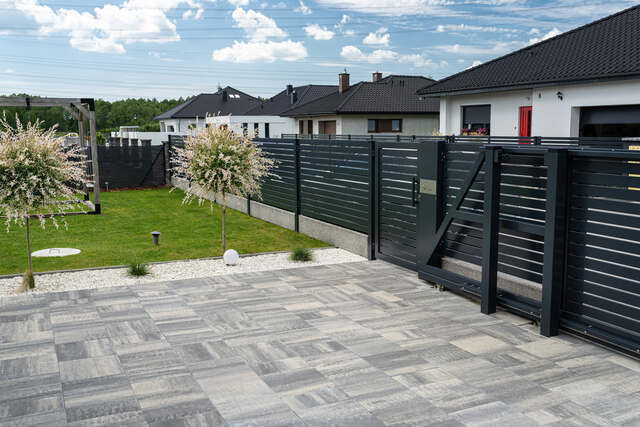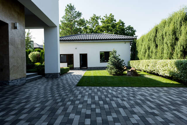 Präzise Verlegung von Pflastersteinen für Wege, Einfahrten und Terrassen.